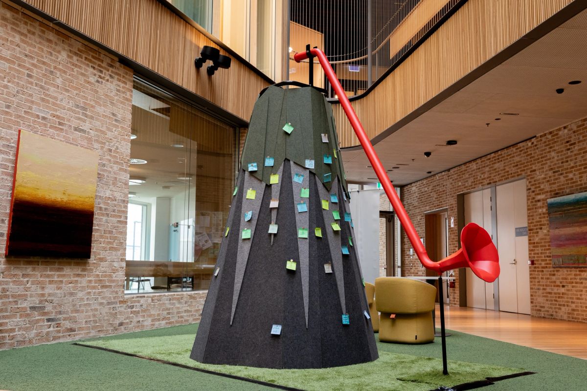 ‘A Mountain of Voices was dreamed up by members of the Voices for Tasmanian Youth through a series of creative workshops and was later brought to life by the team at Terrapin. The Mountain invites children and young people to share their thoughts, views and ideas with the adults around them.